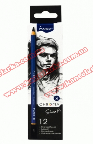 Олівці вугільні (Soft) 12 шт. шестигранні, Chroma, 8040S -12CB, ТМ'Marco' 8040S -12CB