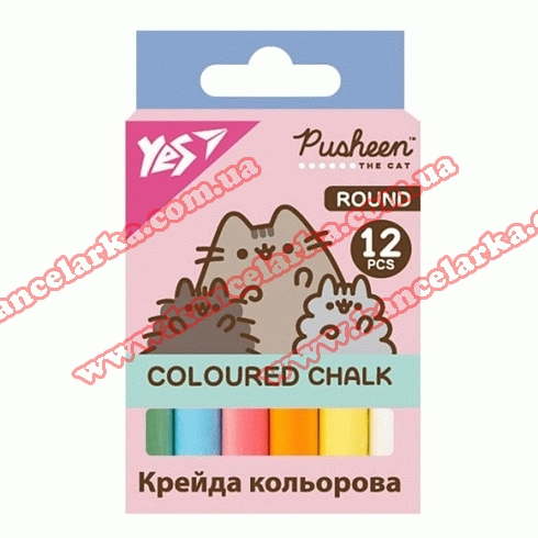 Крейда кольорова Yes 'Pusheen', 12 шт., кругла, 400556 400556