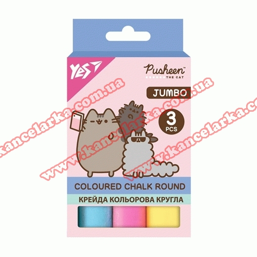 Крейда кольорова Yes 'Pusheen', 3 штук, JUMBO, 400553