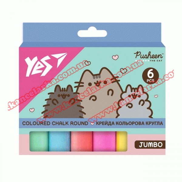 Крейда кольорова Yes 'Pusheen', 6 штук, JUMBO, 400559 400559