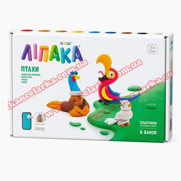 Набір пластиліну, що самостійно твердіє, ЛІПАКА – ПТАХИ: ПАПУГА АРА, ФАЗАН, ГОЛУБ, 60025-UA01 60025-UA01