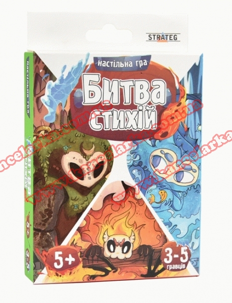 "Битва стихій" - це захоплива настільна гра, яка переносить гравців у світ магії та пригод. Ви станете володарем однієї з п'яти стихій: вогню, води, землі, дерева або металу...