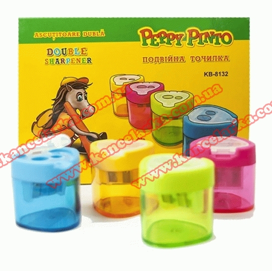 Чинка пластикова з контейнером на 2 леза, KS-8132, Peppy Pinto