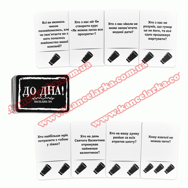 «До дна!» — це вибухово весела алкогольна гра з гострими, інколи дуже пікантними запитаннями, які миттєво розкривають вашу компанію з абсолютно нового боку...