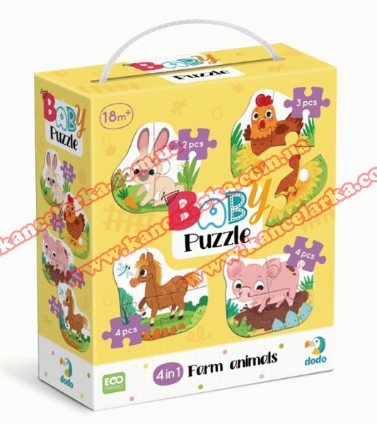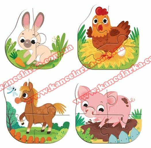 Познайомте свого малюка з милими жителями ферми разом із набором Baby Puzzle “Домашні тварини”. У комплект входять 4 окремі пазли з різною кількістю елементів (від 2 до 4 деталей) — кролик, курочка, поні та поросятко. Така гра поступово розвиває логічне мислення, уважність і дрібну моторику.
