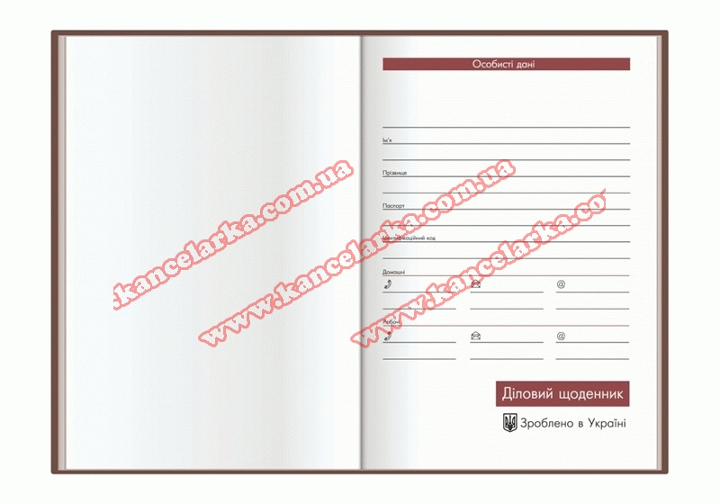 Кольори друку – бордовий та темно-сірий, форзац – повно кольорові мапи України та Європи, закладка – шовкова стрічка бордового кольору.