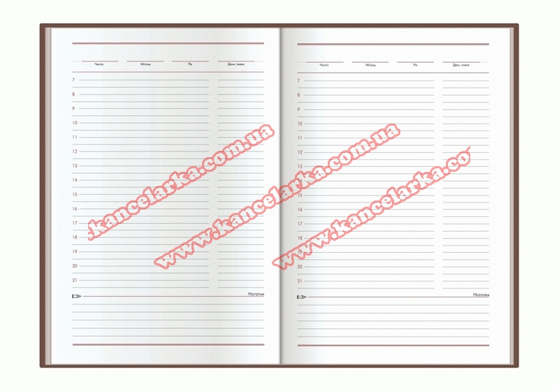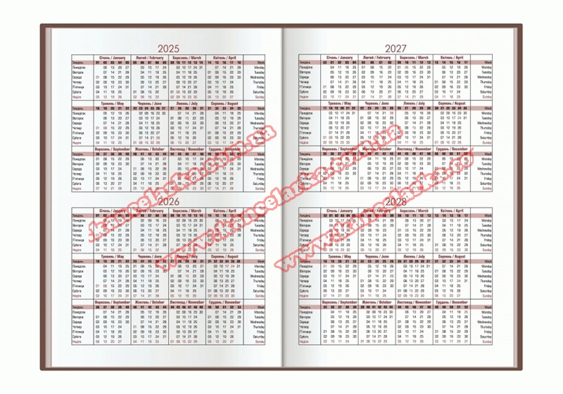Одна сторінка – один робочий день, календарі на 4 роки, нотатник в клітинку.