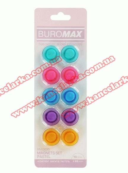 Комплект кольорових магнітних тримачів ПАСТЕЛЬ від BUROMAX – для фіксації документів, нотаток, замальовок, плакатів, планів, графіків та інших посібних матеріалів на магнітно-маркерних дошках та фліпчартах, а також у побуті, для декоративного оформлення, на звичайному холодильнику...
