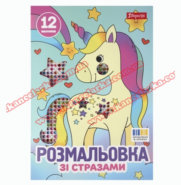 Розмальовка А4 1Вересня 'Єдинороги' зі стразами, 12 стор., 743370 743370