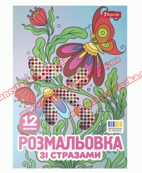 Розмальовка А4 1Вересня 'Квіти' зі стразами, 12 стор., 743371 743371